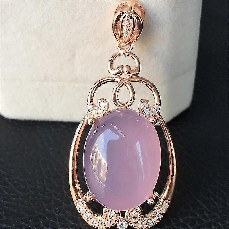 Gift for girlfriend lover 925 sterling silver Pink Rose Quartz Pendant Natural Rose Chalcedony Pendant Inlaid