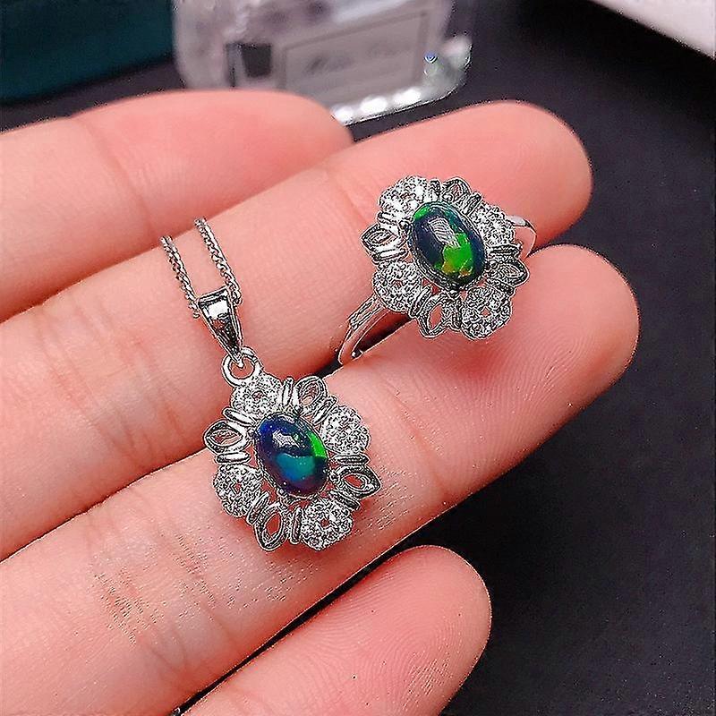 Gift for girlfriend lover 925 sterling silver Black Opal Set Natural Australia Opal Set Beautiful Full Flash Color Gifts For Girlfriend