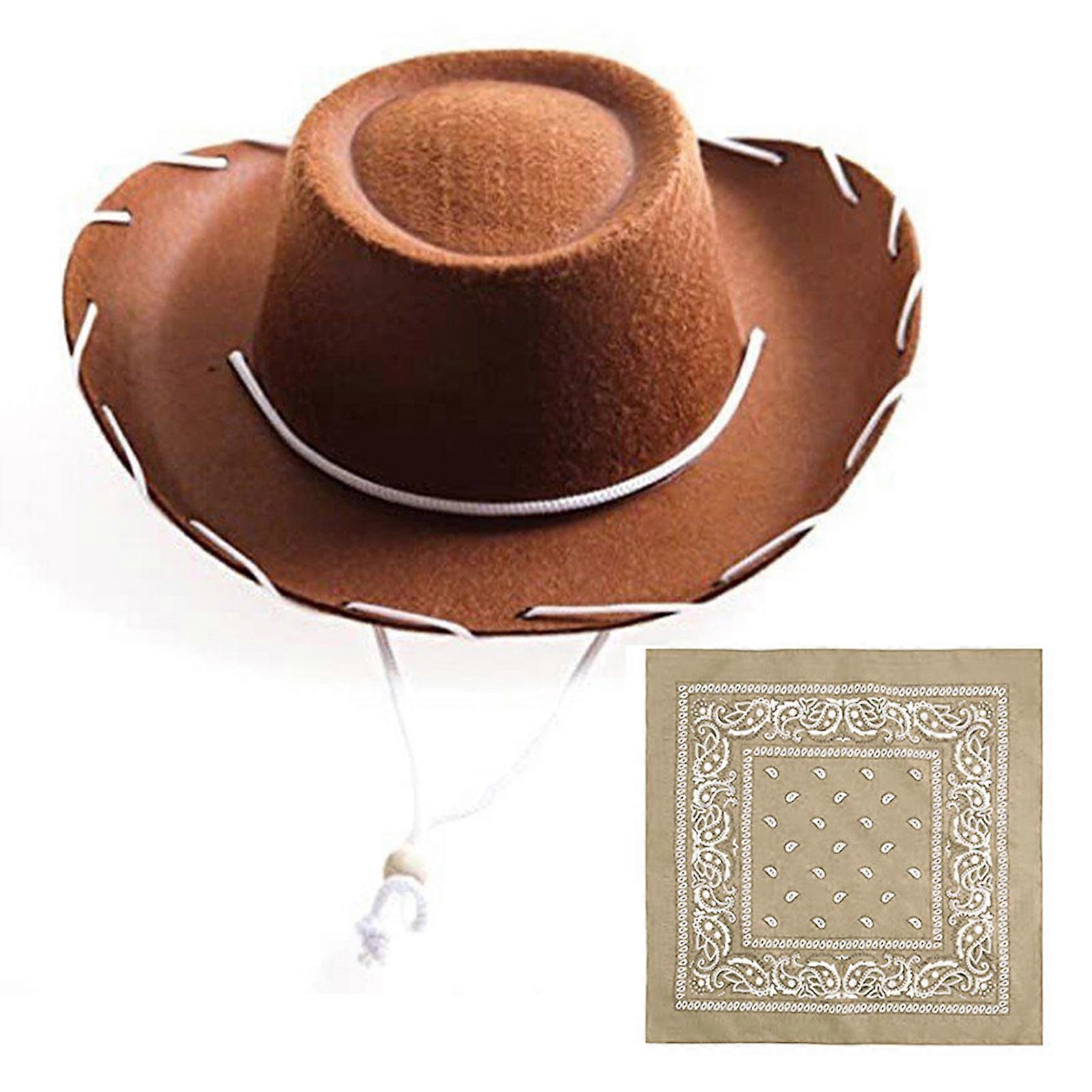 Cowboy Hat Bandanas Bachelorette Party Dress up Westerns Hat Party Western Travel Hat Cowboy Cosplay For Men Bandanas Brown plus square to