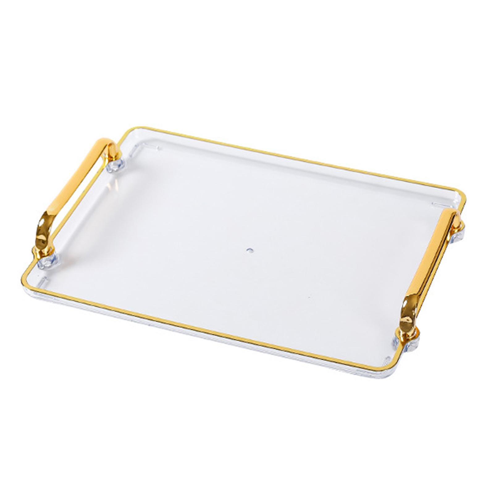Modern Serving Tray Plastic with Handles Storager for Countertop Lunch Food amber