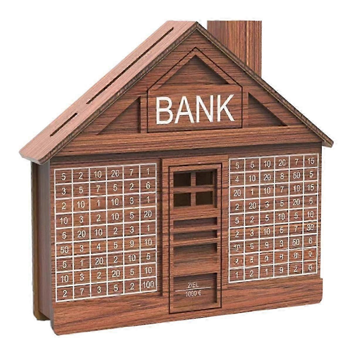 House Shape Wooden Money Box with Counter Wooden Crafts Money Saving Box Portable Coin Bank Brown M