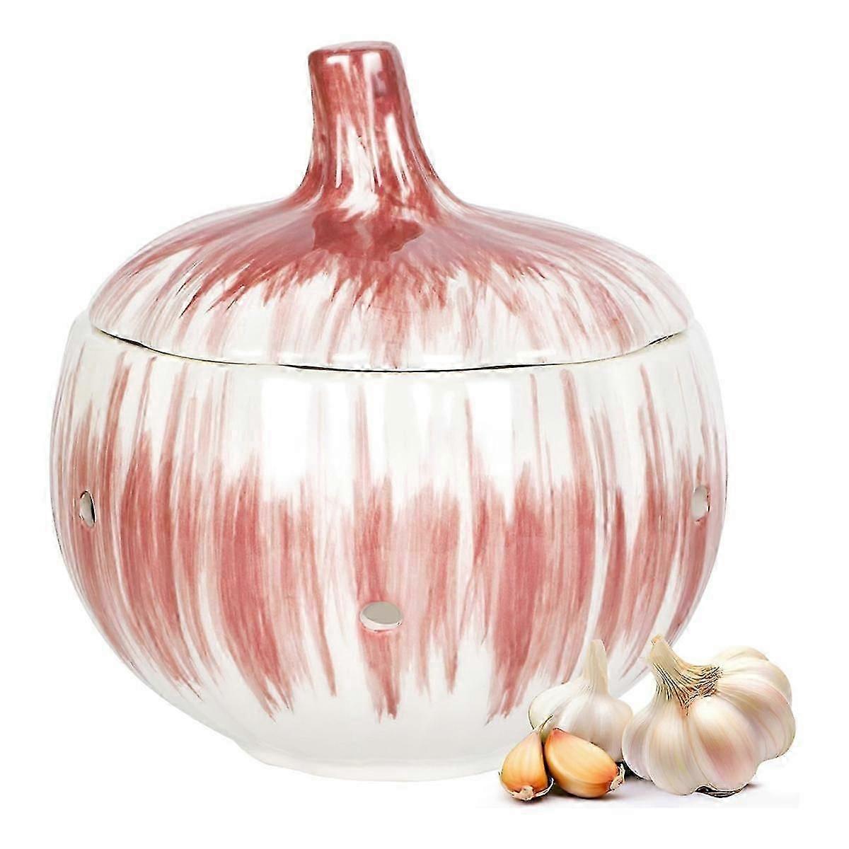 Garlic Keeper for Counter with Lid Ventilated Ceramic Garlic Keeper, Garlic Holder Storage Container to Keep Your Garlic