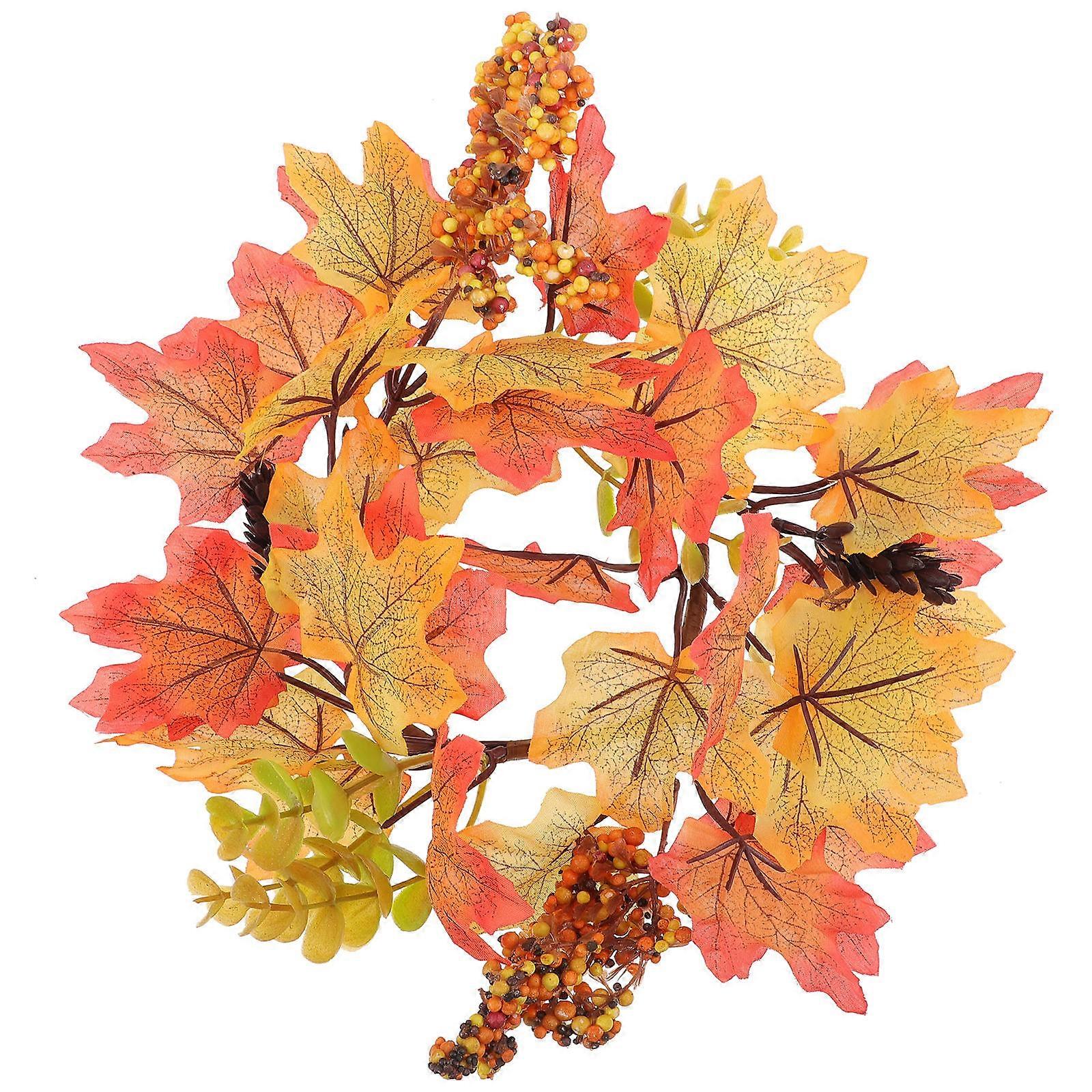 Fall Decorative Candle Rings with Maple Leaf Design for Home Door Hanging Assorted Color Silk and PE Plastic