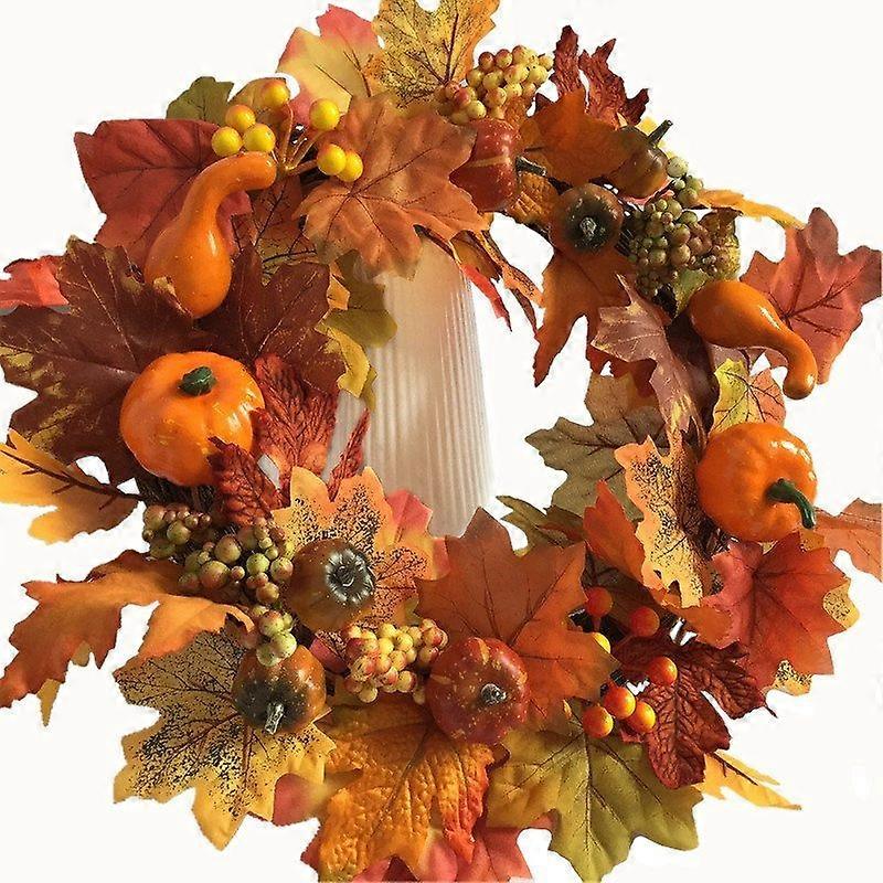 Fall Wreath with Maple Leaves, Fall Pumpkin with Garland, Pinecone and Pumpkin Wreath for Front Door in Fall, Halloween, Thanksgiving