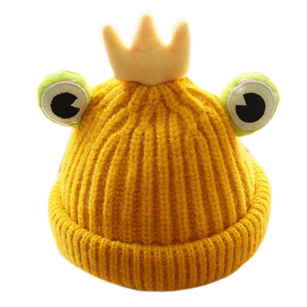 Cute Cartoon for Frog Big Eyes Knitted Hat Sweet Knitted Cap Wild Personality Outdoor Trend for Children Baby Boys and G Yellow