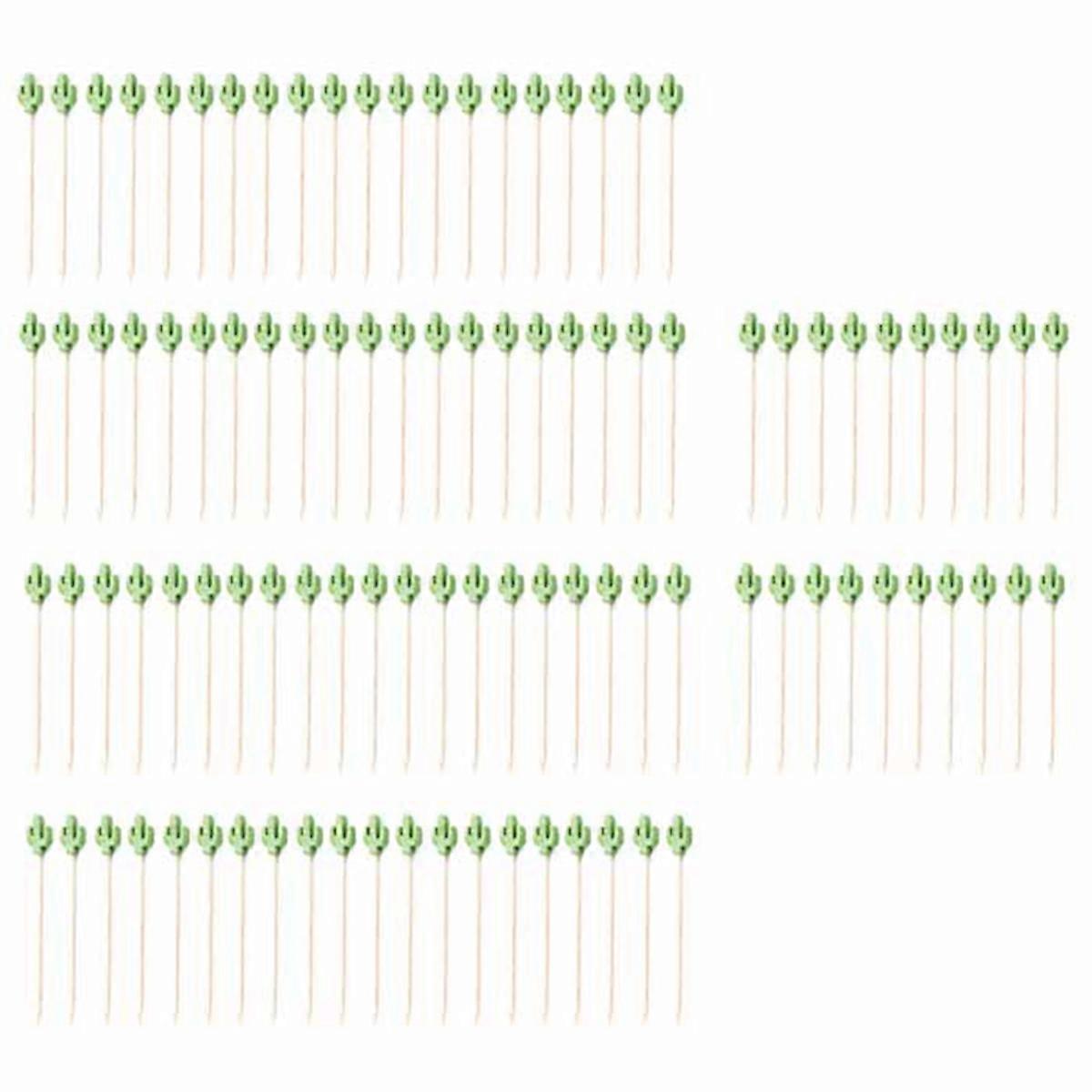Cocktail Picks Handmade Bamboo Toothpicks 100Pcs 5.1in Green Cacti