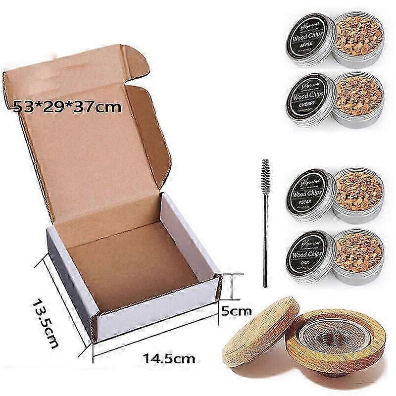 This smoke infuser lends a heady, full sensory experience to cocktails that wont go unnoticed or be forgotten.Perfect Kit for Any Drink: This unique at home smoker kit works perfectly with any cocktails, , or bourbon.Simple yet elegant design offers anyone the chance to be a professional bartender and wow your friends at your home bar!Perfect for parties, provide a soothing aroma and a perfect accent to any drink.Cold smoke anything you can think of, cocktails, spirits, meats, cheese, coffee, and even ice-cream!Specifications:Material:Oak WoodSize Chart:Diameter: 10cm/3.94inchPackage Includes:A:smoke infuserorB:smoke infuser Kit + Ckeaning Brush4 box Wood ChipsNote:1. Please allow slightly error due to manual measurement.2. Due to the difference between different monitors, the picture may not reflect the actual color of the item.3. Wish you a wonderful on-line shopping!