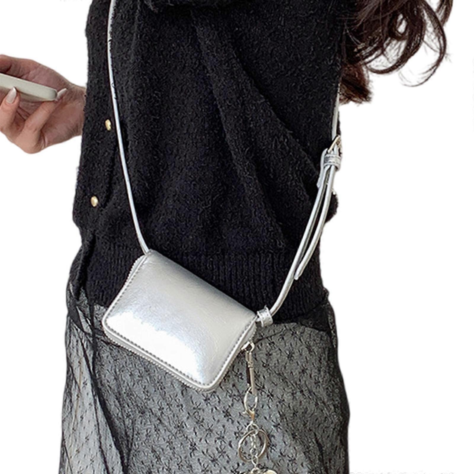 Casual Crossbody Bags Fashion Small Square Bag Phone Bag Vintage Shoulder Bags for Women Girl Splashproof Leather Bag Silver