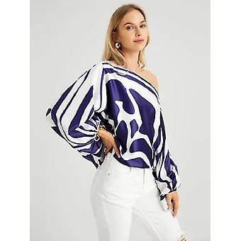 Casual Satin Commuting Suit Fashion Hollow Off Shoulder Tops With Long Pants Women 2 Piece Sets 2023 Spring Loose Print Outfits