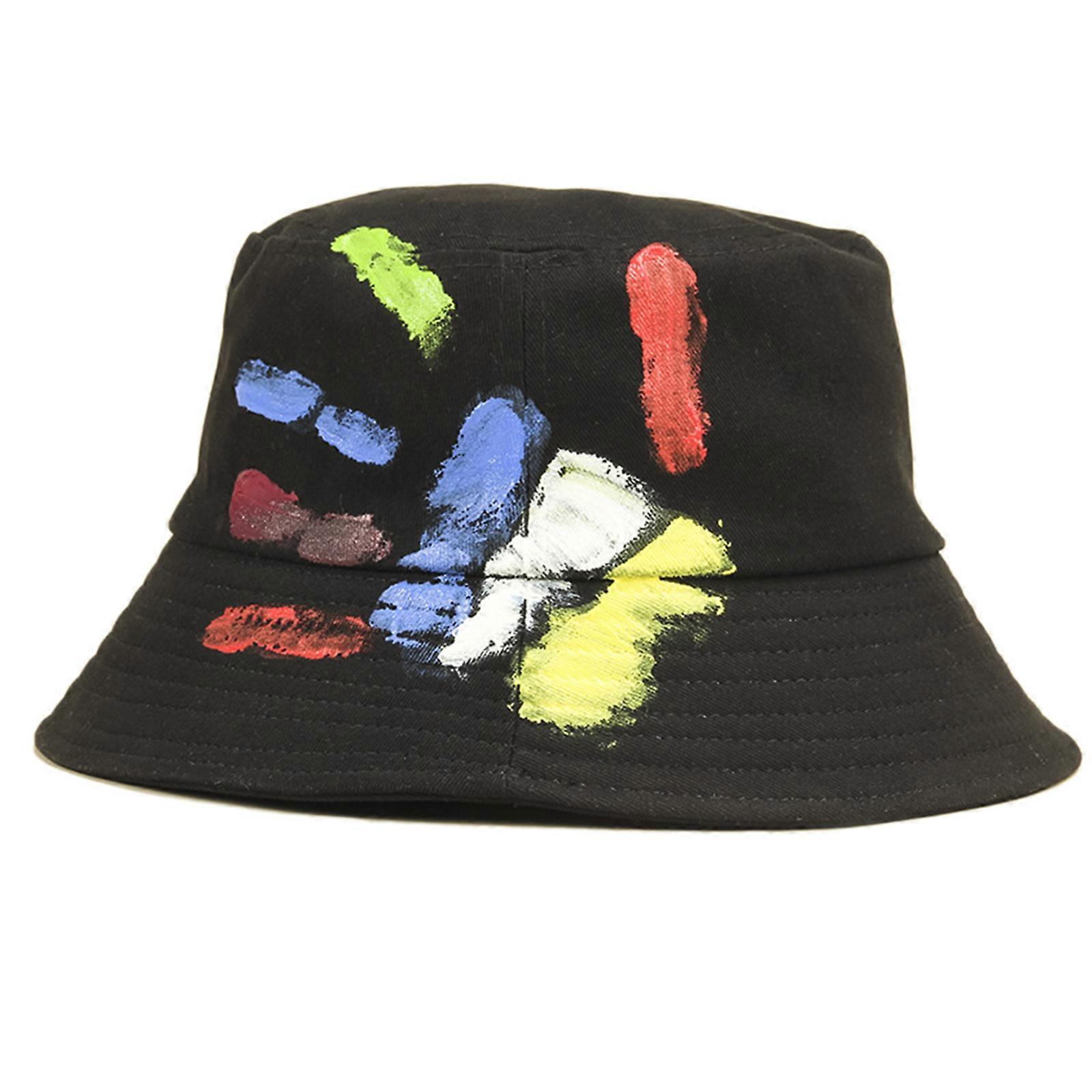 Casual Fisherman Hat Summer Breathable Bucket Hat Cartoon Graffiti Basin Hat Sunscreen for Outdoor Street Strolling Black bottom