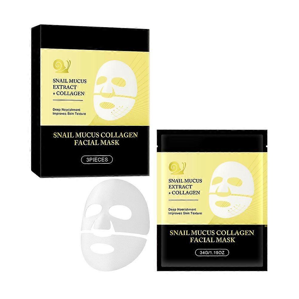 Specification: Net content 34g * 3pcs Snail mucus extract: Snail mucus is rich in various proteins, collagen, hyaluronic acid and other ingredients, which have moisturizing and nourishing effects, repair the skin, promote skin regeneration, and help improve skin texture. Collagen: Collagen is an important protein component in the skin, which can enhance skin elasticity, tighten the skin, reduce the appearance of wrinkles and fine lines, and make the skin smoother and more delicate. Moisturizing and nourishing: The moisturizing ingredients in the facial mask can deeply moisturize the skin, increase the moisture content of the skin, improve the dryness of the skin, and make the skin softer and smoother. Three in one facial mask: It integrates multiple functions, not only moisturizes and moisturizes the skin, but also tightens the skin, resists wrinkles, and provides all-round care for the skin. usage method: After cleaning the face, take out the facial mask and apply it on the face. Keep the facial mask close to the skin and wait for 15-20 minutes. After taking off the facial mask, gently massage the skin to help the skin absorb excess essence. matters needing attention: Please conduct a skin sensitivity test before use to avoid allergic reactions. If you experience discomfort during use, please stop using immediately. Avoid applying the facial mask on the face for a long time to avoid the burden on the skin. Please store and use according to the instructions in the product manual, avoiding direct sunlight and high temperature environments. Comments: 1. Manual measurement tolerance is 2-5g. Please don't mind your replacement. 2. Due to the differences between different monitors, the image may not reflect the actual color of the project. Thank you very much. 3.SKU color is the color of product packaging. Package included: 1 * facial mask