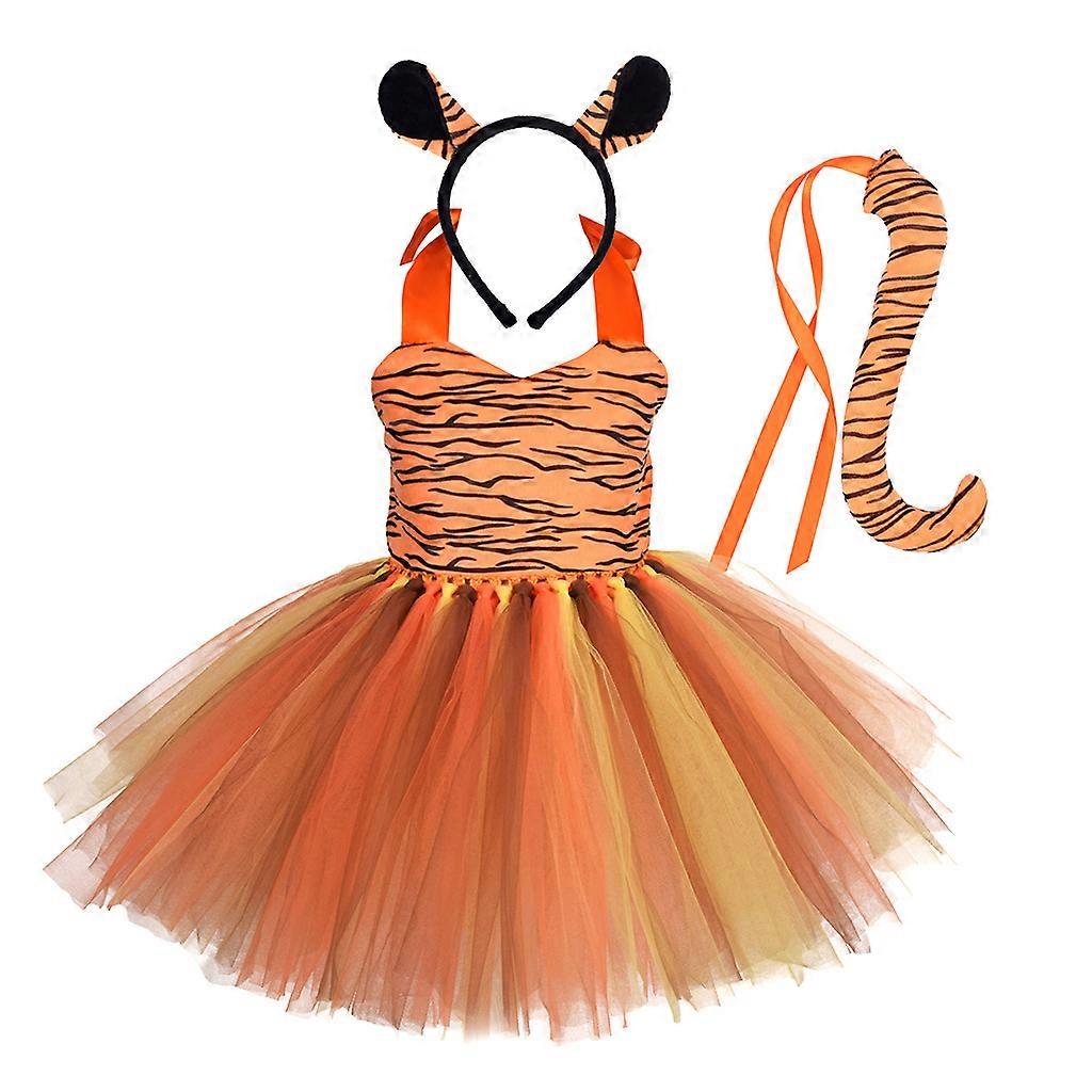 Cartoon Costume With Headband Girls Kid Tiger Tutu Dress For Birthday Child Winter Recital Party Dress Up Clothes 11T12T