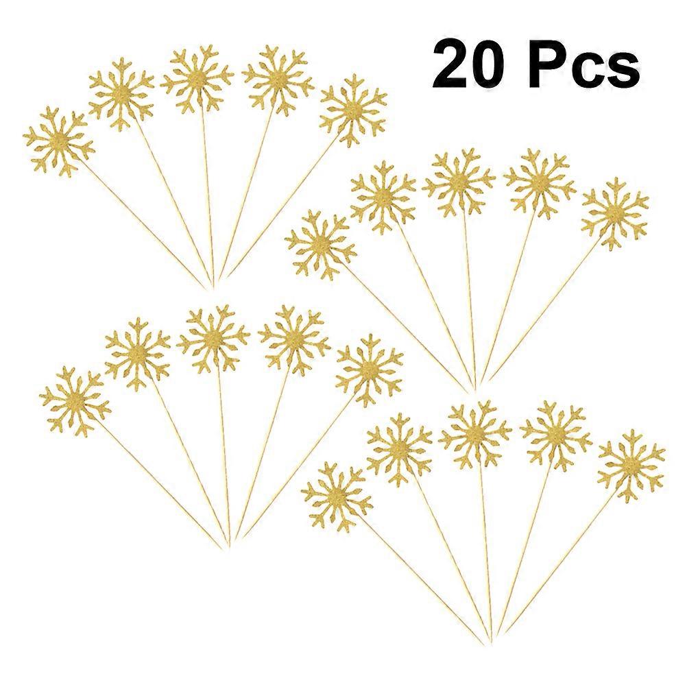 Cupcake Toppers Snowflake Golden Birthday Party Favors 5.3*5.3 Cm Bamboo 20Pack
