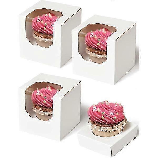 Cupcake Boxes 50 Pcs White Individual Cupcake Boxes, Single Cupcake Containers Cardboard Holder with Inserts and Window