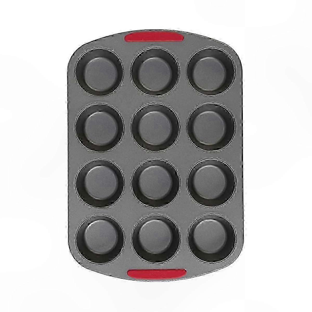Silicone-Handled Non-Stick Baking Pan for Cupcakes & Muffins, Carbon Steel High-Temperature Oven Tray