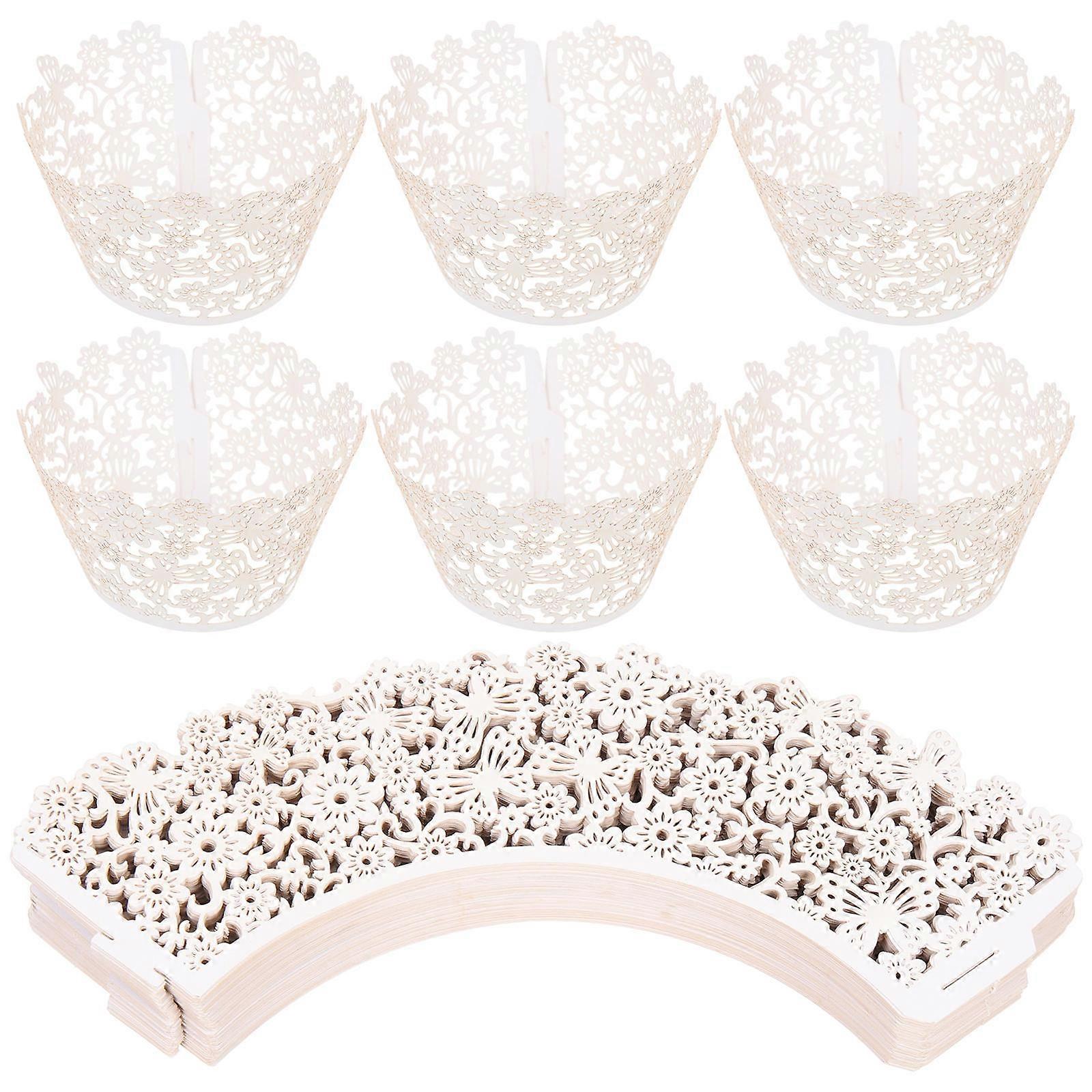 Cupcake Liners Muffin Baking Cups White Hollow Pattern For Baby Showers 3.14x2.16x1.97in Decorative Use 100Pcs