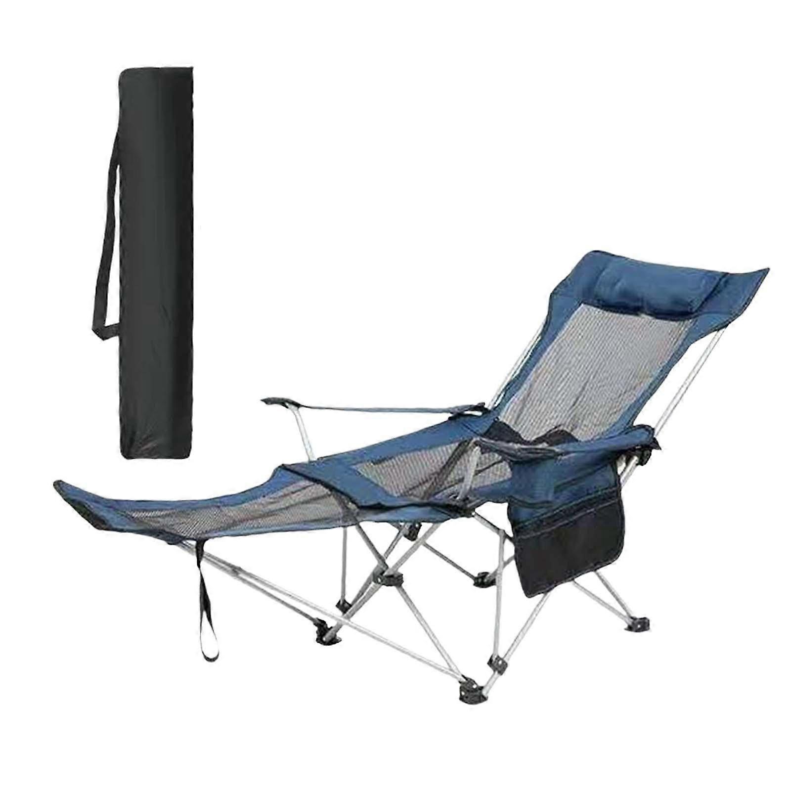 Folding Lounge Chair with Cup Holder Lounger Portable Heavy Duty Beach Chair Blue