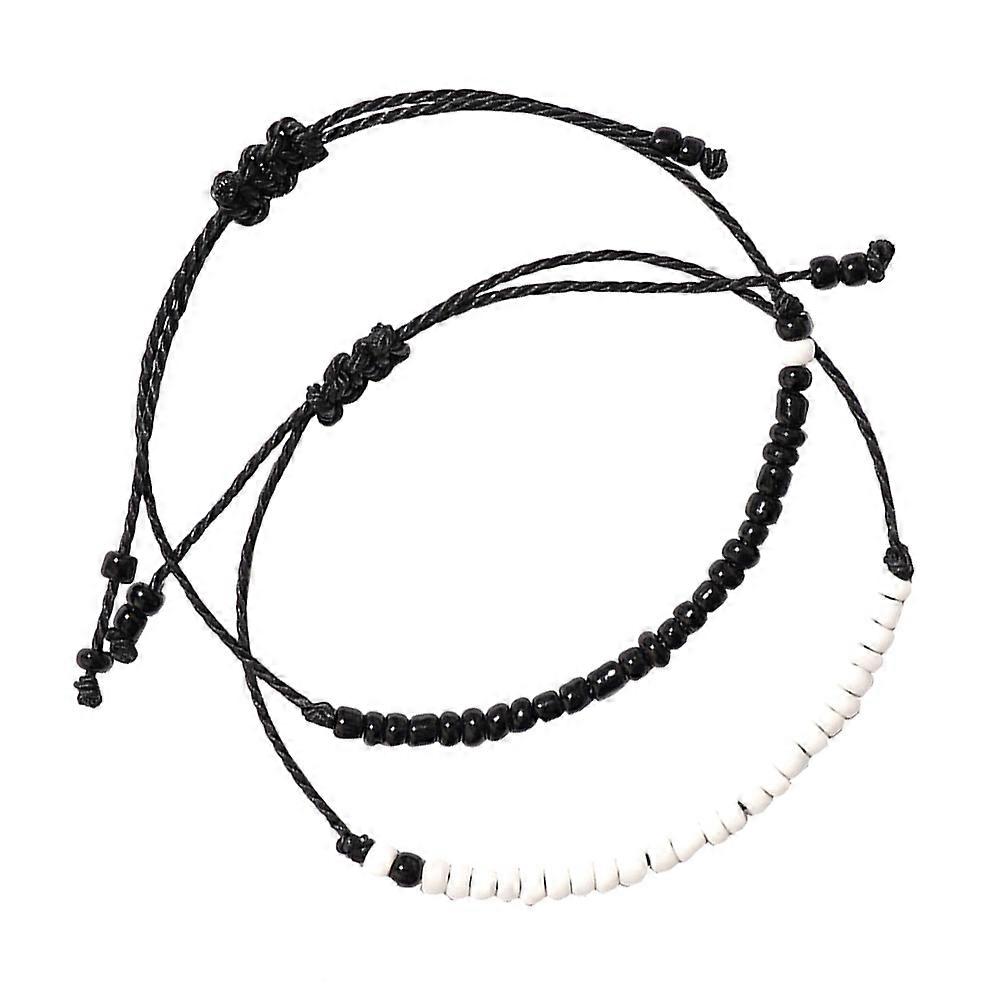 Beaded Braided Bracelets for Couples Woven Knot Design Relationship Bracelets for Men and Women, Stretchy Handmade Accessories