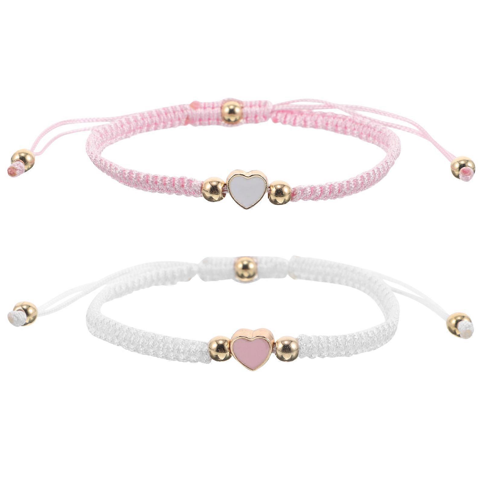 2pcs Braided Love Heart Bracelets for Couples – Handmade Woven Design for Valentine's Day, Anniversaries & Everyday Wear
