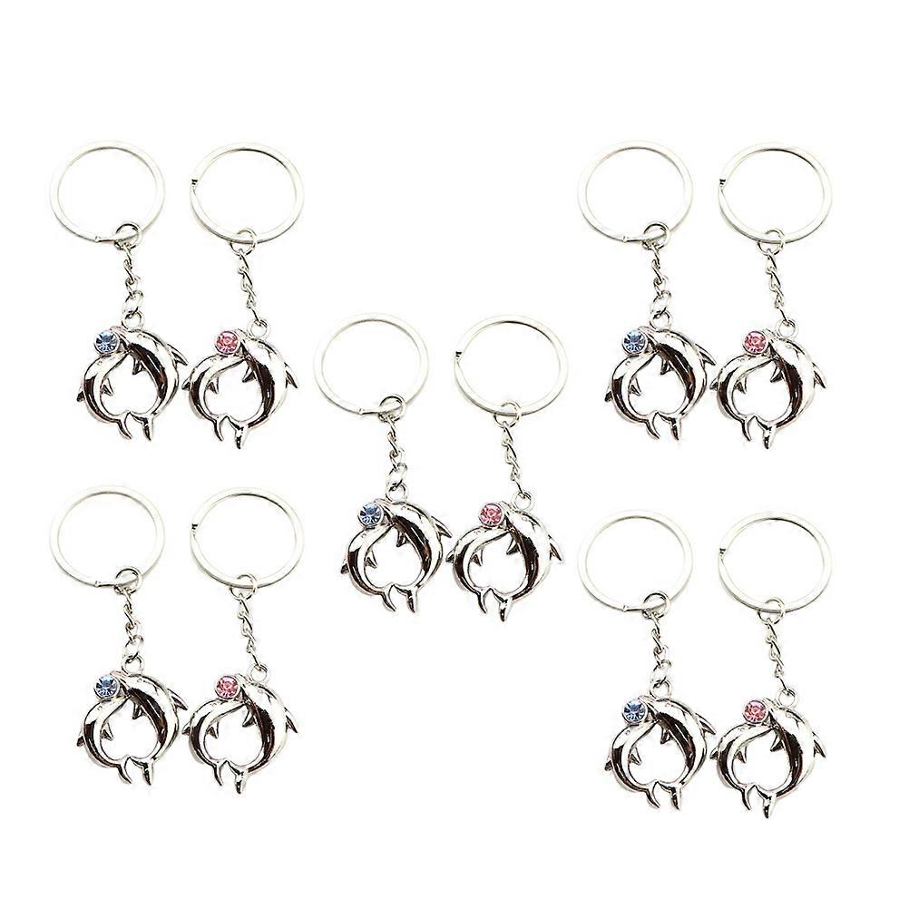 Couple Keychains Dolphin Shape Metal Key Attachment for Couples Valentine's Day present 5Pairs