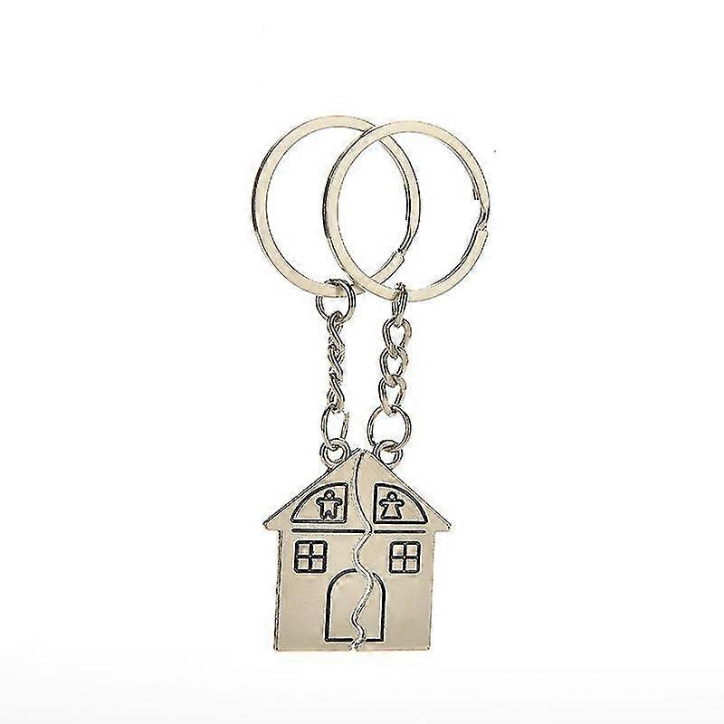 Couple Keychain Alloy Love Family House Split Boyfriend Girlfriend Valentine Day Gift Love Pattern Jewellery For Lovers Keychain(1 Pair, Silver)