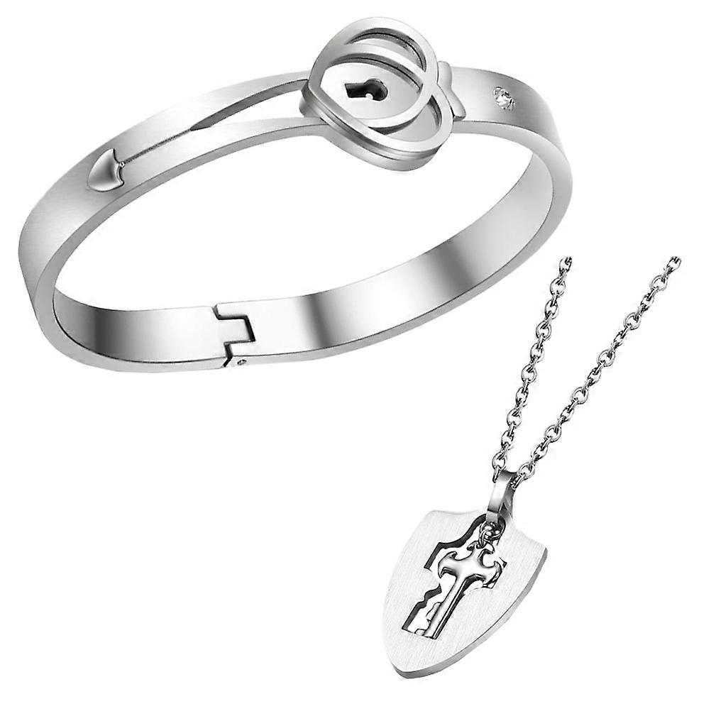 Couple Jewelry Set Key Shaped Lock Shaped Prom Accessory Titanium Steel 1Set