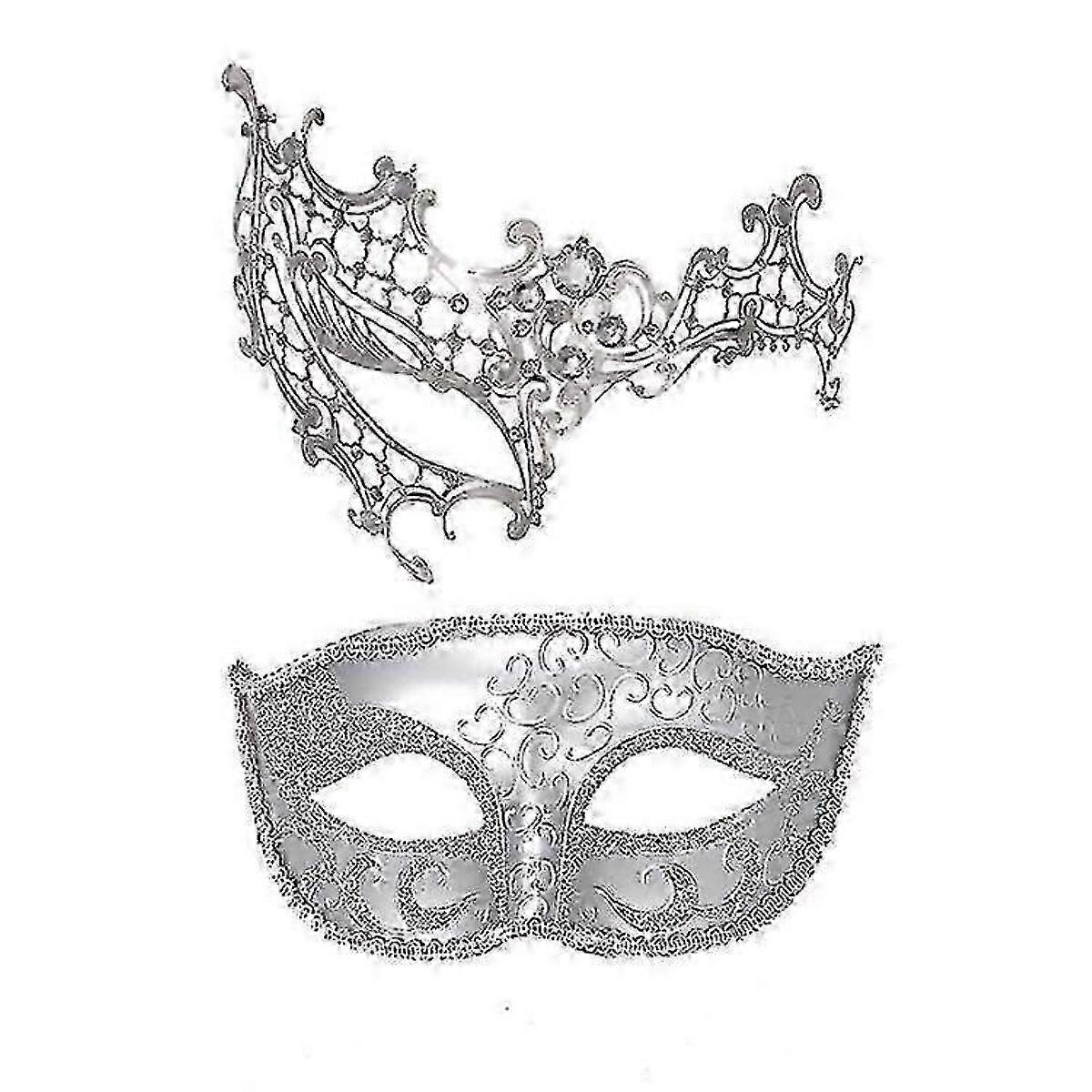 Couple Mask Half Venetian Masquerade Ball Mask Mardi Gras Mask Christmas Cosplay Costume Halloween Party Mask 2 Pack (white)
