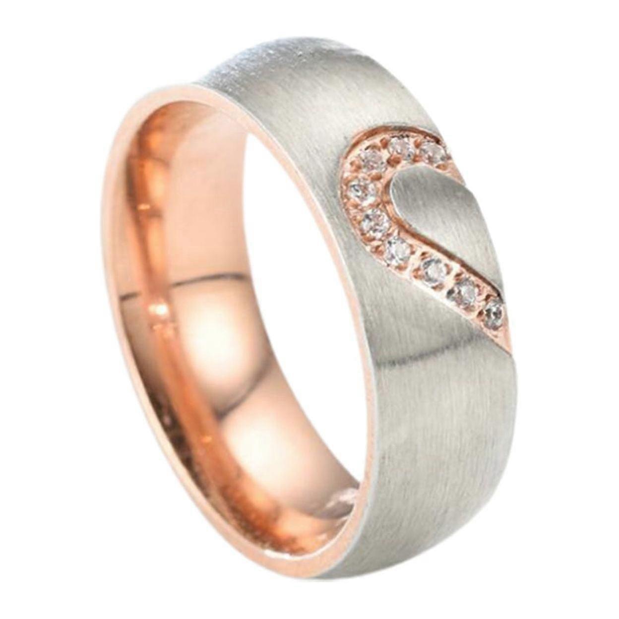 Couple Ring Round Half Heart Pattern Jewelry Bright Luster Rhinestones Ring for Valentine Day