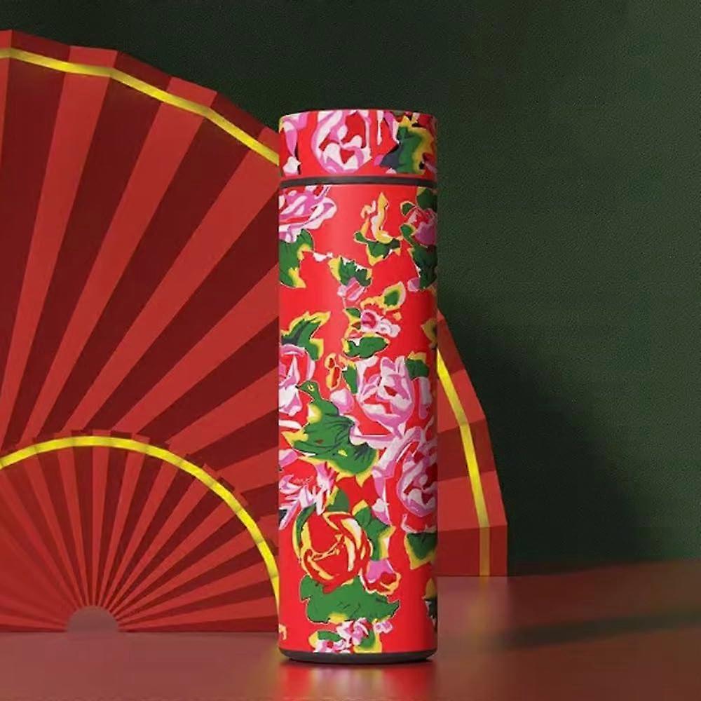 Cups Chinese Vintage 17oz Double Wall Thermos Travel Mug with Large Flower Jacket for Hot and Cold Beverages