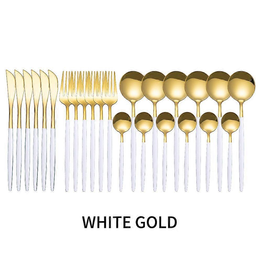 Cutlery, fork and spoon set Matte gold (white+gold) (24pcs)