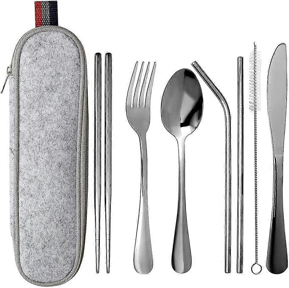 Cutlery Set,portable Stainless Steel Utensils Reusable Travel Camping Cutlery Set Knive/fork/spoon/chopsticks/straws/brush/portable Case(8 Piece)