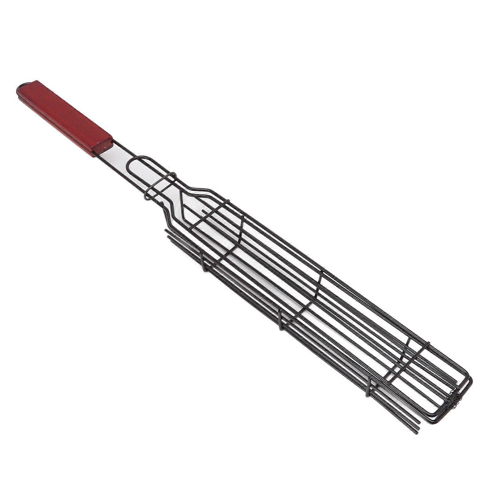 Kabob Grilling Baskets Lockable Iron Kebab Grill Grate with Wooden Handle for Grilling Vegetables Hot Dog Meat Red