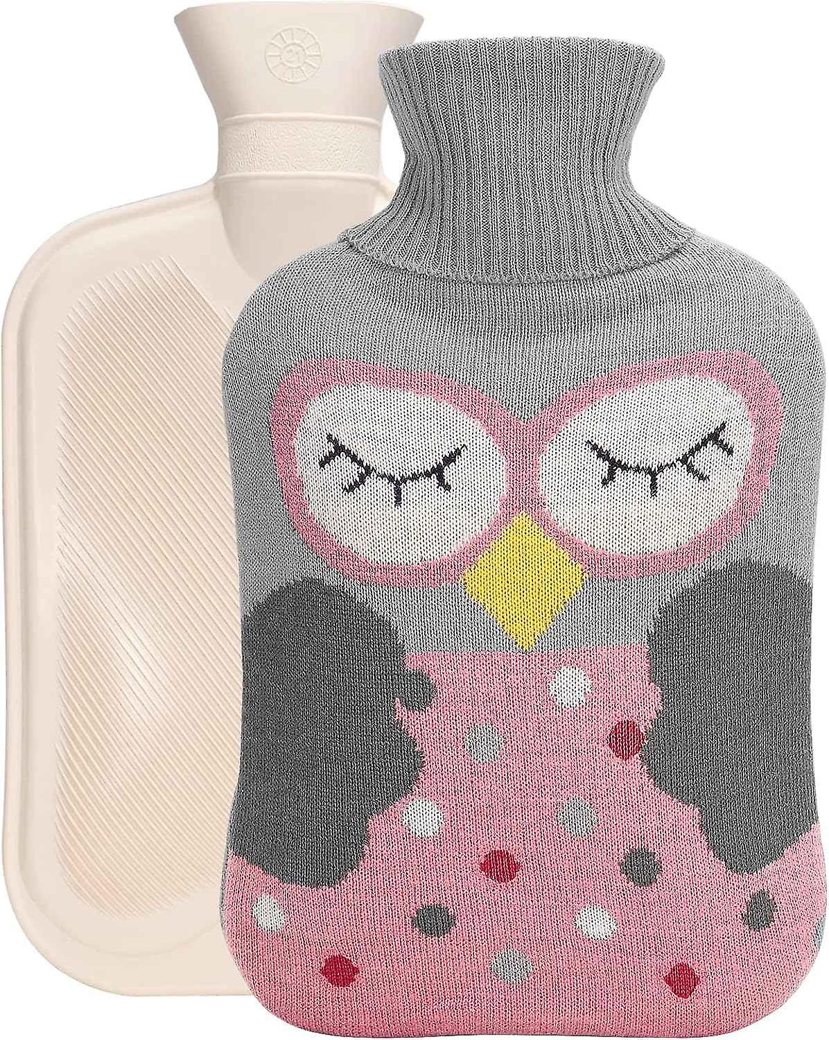 Hot Water Bottle with Cover Large 2L, Rubber Warm Water Bag, Hot Water Bottle (Pink Owl)