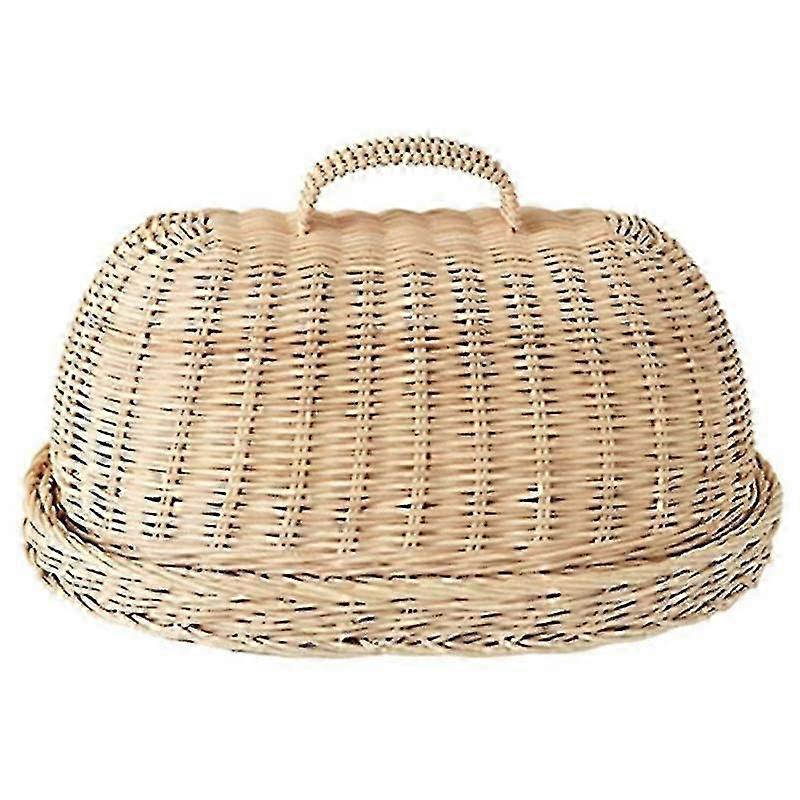 Rattan Storage Tray with Cover,Hand-Woven Wicker Baskets,Bread Fruit Food Breakfast Display Box,for Food, Fruit,Cake,Etc
