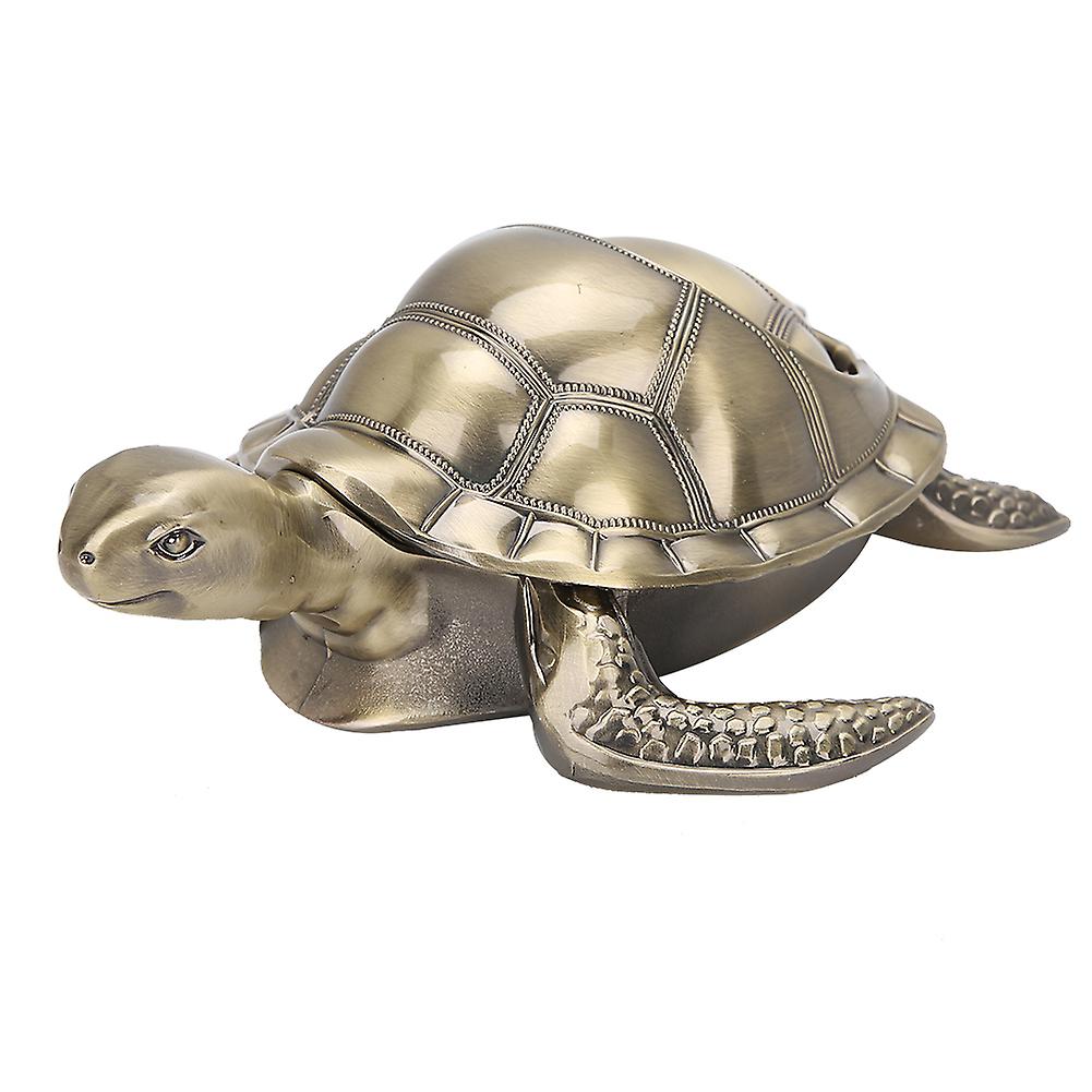 Metal Ashtray with Cover Retro Metal Office Ornaments Windproof Office Ornaments Sea Turtle shape(Bronzed )