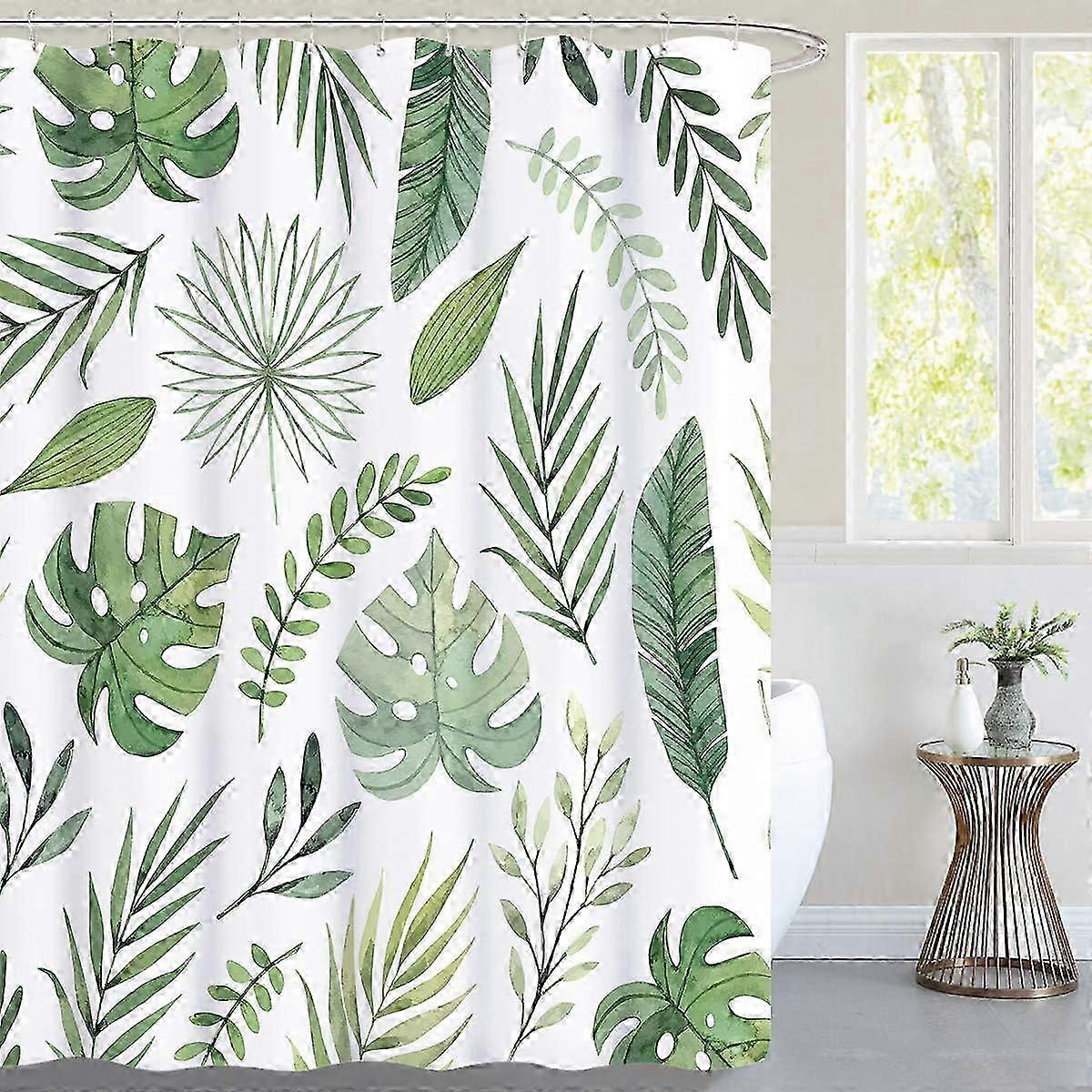Mildew Resistant Shower Curtain, Green Leaves Tropical Plants Shower Curtain Polyester Fabric for Bathroom with 12 Hooks Waterproof, 180 x 200 cm Edit