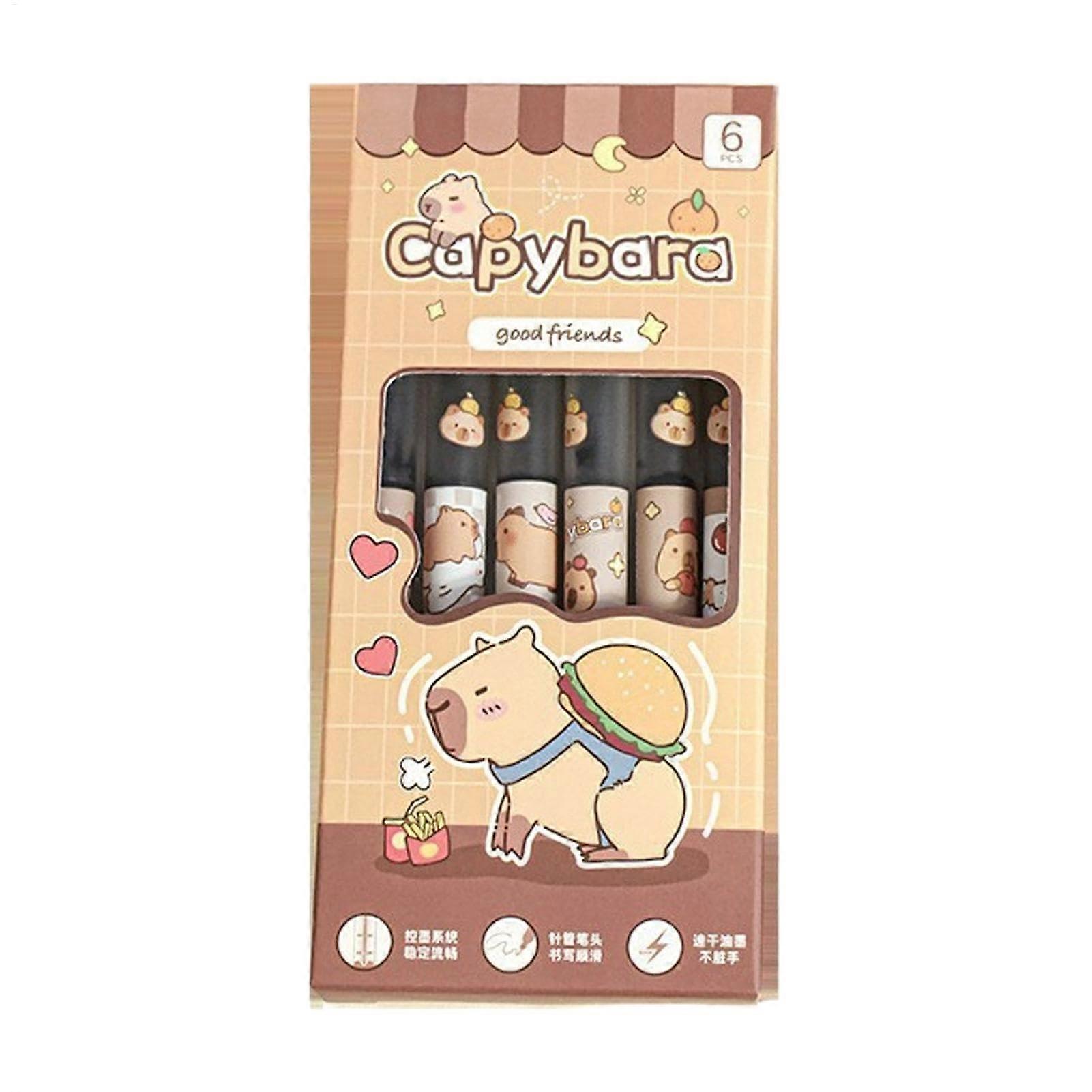 Capybara Gel Pens Set, 6x0.5 mm, Quick-Drying Animal Ink Pens, Aesthetic Rollerball Pens, Kids Stationery Gift