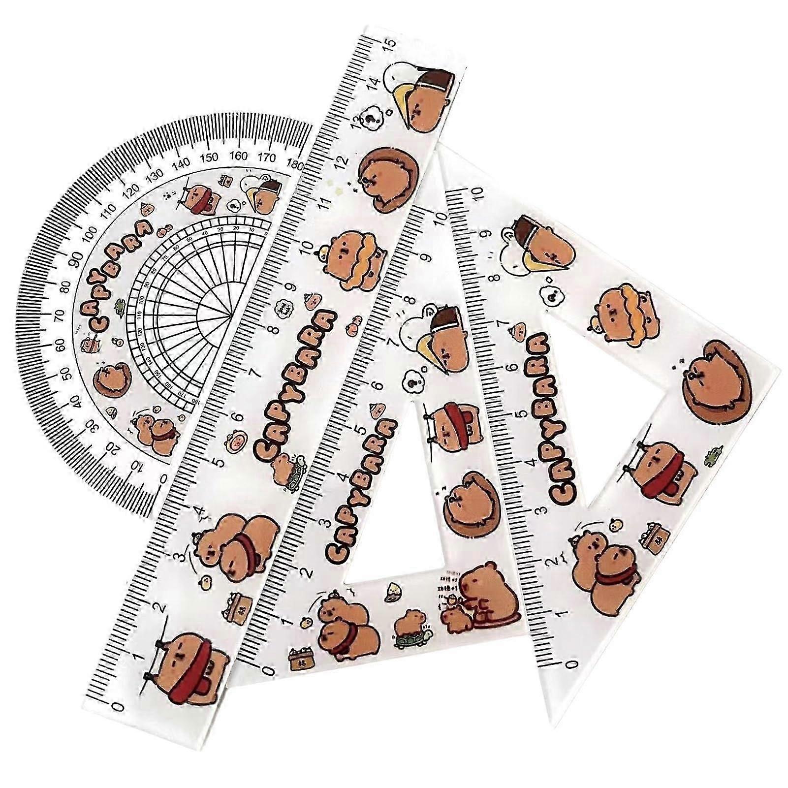 Capybara Ruler Set 15cm Plastic Straight Triangle Protractor Math Geometry Tool