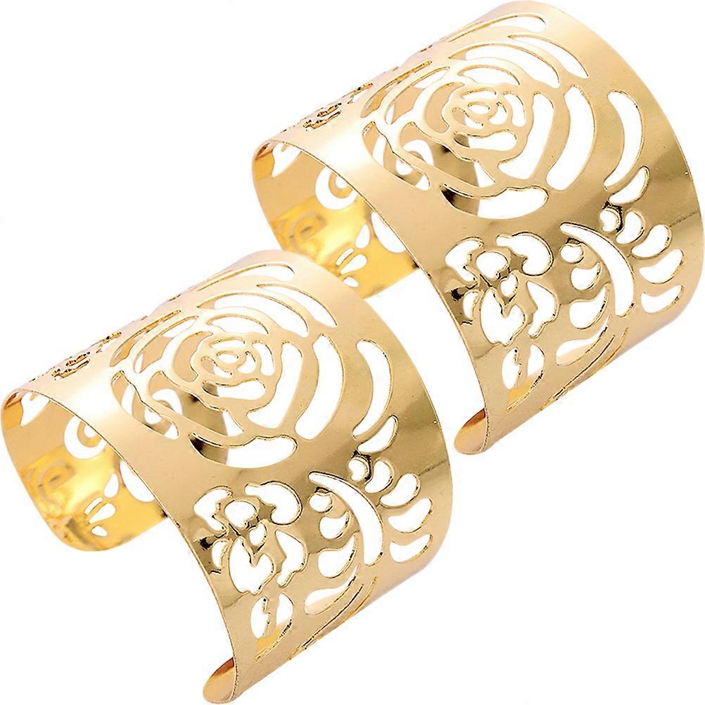 Cuff Bangles Adjustable Open Bracelet Arm Cuff Wrap Open Bangle Wrist Decor Women Jewelry Golden 6X5.6CM 2Pcs