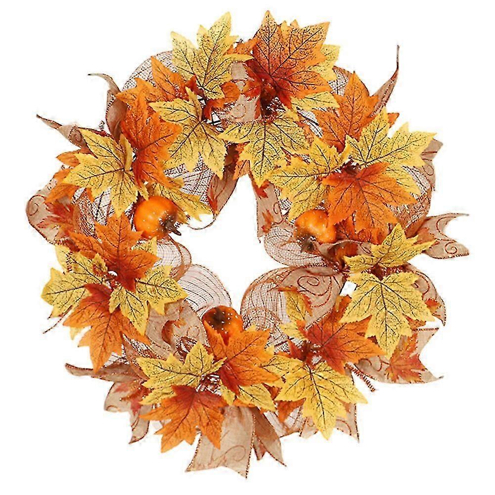 Fall Wreath with Pumpkins Decorative Wreath Two-Tone Maple Leaves Autumn Home Wreath Decor for Thanksgiving