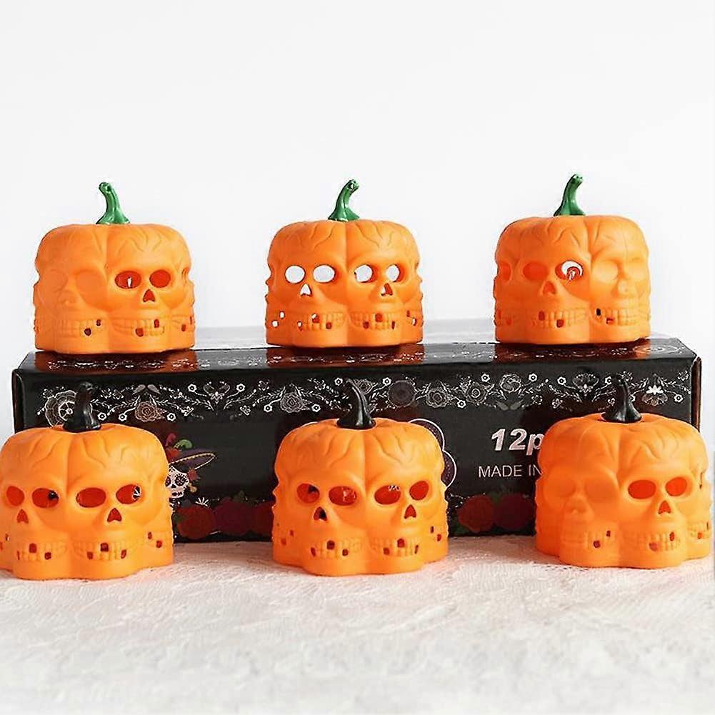 Pumpkin Light Decor, Skull Candle Lamp with Brown Stalk Battery Powered for Home Holloween Theme Partyorange12Pcs