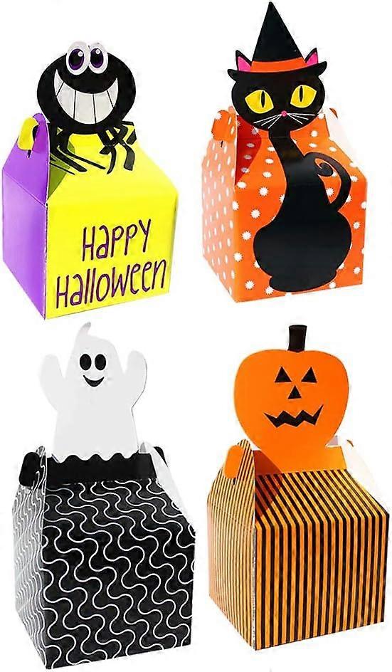 Halloween Candy Cookie Box Creative Storage Box for Halloween Party Cats Spiders Ghosts Pumpkins Pattern Eco-friendly material for safe and durable use. Premium paper material make it not easy to tear or break. You can store a large amount of candies, cookies into this candy box, and send to you friends as Halloween gift. Features adorable cartoon patterns and vibrant colors, cute addition to Halloween party. Can hold some small gift for your kids etc. With differen patterns for your choices.With a creative picture design is adorable and funny. Delivery Quantity: 40pcs Product color:mixed color Product size: 9*9*7CM
