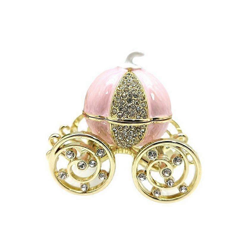 Pumpkin Carriage alloyTrinket Box with Decorative Crystal Ornament, Unique Gift to Store the Ring(1pcs, pink)