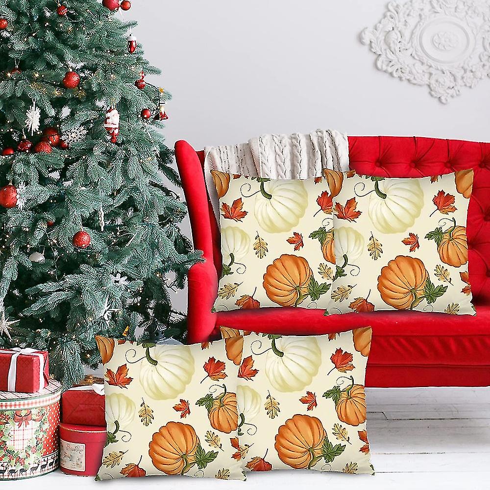 Pumpkin Fall Happy Harvest Maple Leaf Throw Pillow Covers 18 X 18in