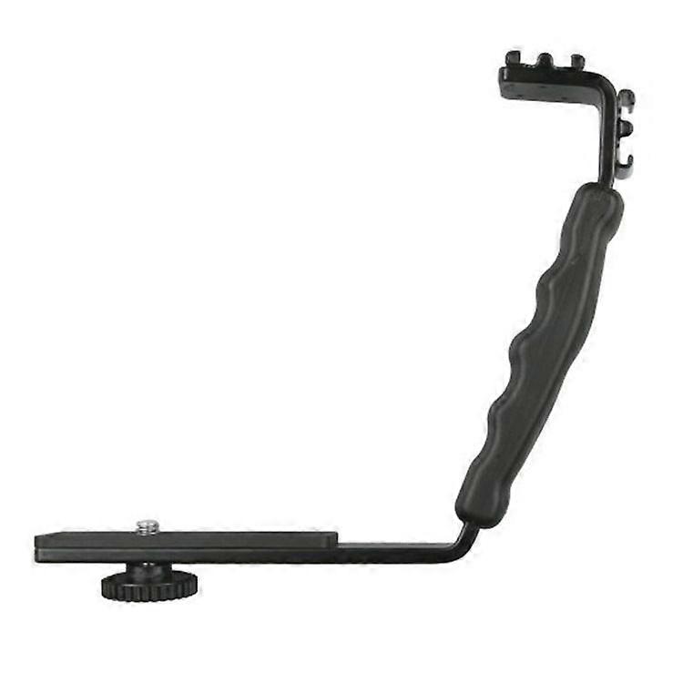 DURABLE MATERIALThe video handle bracket is made of quality material, this item is sturdy, durable, portable and lightweight. At the same time, the L-shaped brackets are all made of aluminum alloy, very strong and durable. EASY TO USEThe L-shaped camera flash bracket has two hot shoes. And, the flashlight camera bracket holder offers multiple combinations for mounting the flash with other accessories. At the same time, you can mount the flash and another accessory. UNIVERSAL 1/4" SCREWThe international standard 1/4" screw thread fits most cameras and camcorders. It is an ideal accessory for photography enthusiasts. Meanwhile, the L-shaped bracket can also be mounted on a tripod. L-SHAPED DESIGNThe L-shaped design is ideal for horizontal or vertical shooting with a comfortable grip. And, the sturdy photography bracket is ideal for photography enthusiasts. Color: Black Delivery Quantity: 1 piecebecomeveryrich