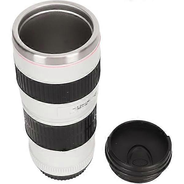 Camera Lens Coffee Mug 400 ml Stainless Steel Travel Lens Cups (White)