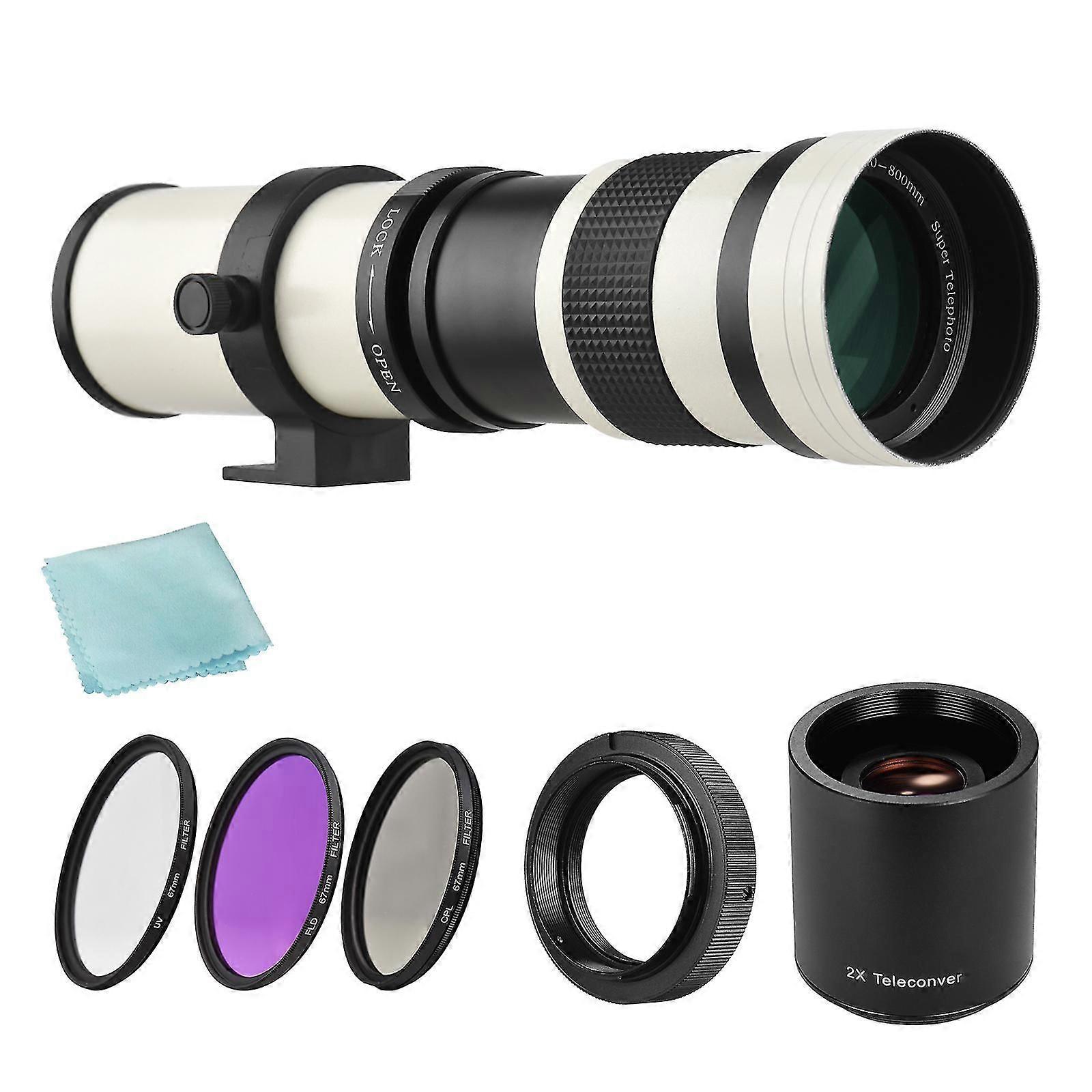 Camera MF Super Telephoto Zoom Lens F/8.3-16 420-800mm T Mount + UV/CPL/FLD Filters Set +2X 420-800mm Teleconverter Lens + T2-AF Adapter Ring for Sony