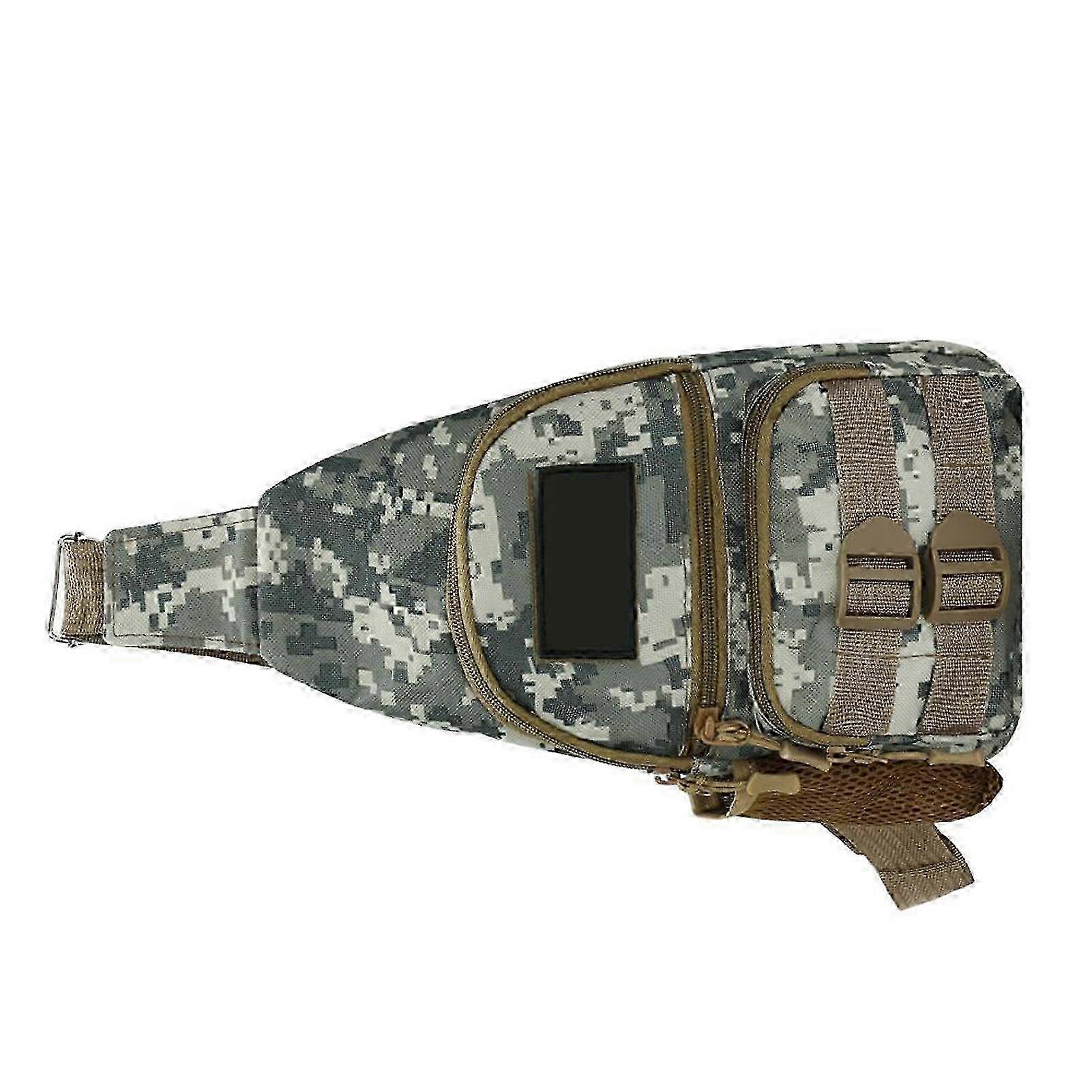 Camouflage Large-capacity Chest Bag Outdoor Multi-pocket Crossbody Bag for Outdoor Camping Hiking<br> This hiking chest bag boasts a generous capacity, meticulously designed with multiple storage pockets for organized storage. It provides ample space for all your essentials.<br> Features:<br> Crafted from high-grade, tear-resistant nylon fabric, this crossbody bag features a smooth zipper, ensuring a superior user experience.<br> It offers ample space for your phone, keys, wallet, cards, sunglasses, headphones, and other small essentials.<br> Versatile in design, it can be utilized as a crossbody bag, shoulder bag, sling bag, or chest bag.<br> It makes an excellent gift for friends and family.<br> Ideal for various outdoor activities such as athletics, travel, hiking, biking, camping, Cycle, running, shopping, gym, fishing, mountain climbing, and more.<br> Specifications:<br> Material: Nylon, polyester<br> Color: Ocean Blue/ Army Green/ Khaki/ Light Grey (optional)<br> Size: 16*8*30cm/ 6.3*3.1*11.8in<br> Weight: 150g/ 5.3oz<br> Package list:<br> 1 * chest bag<br> <br> Note: Due to the light and screen setting difference, the item's color may be slightly different from the pictures. Please allow slight dimension difference due to different manual measurement. Sold by-DIMEANI official store