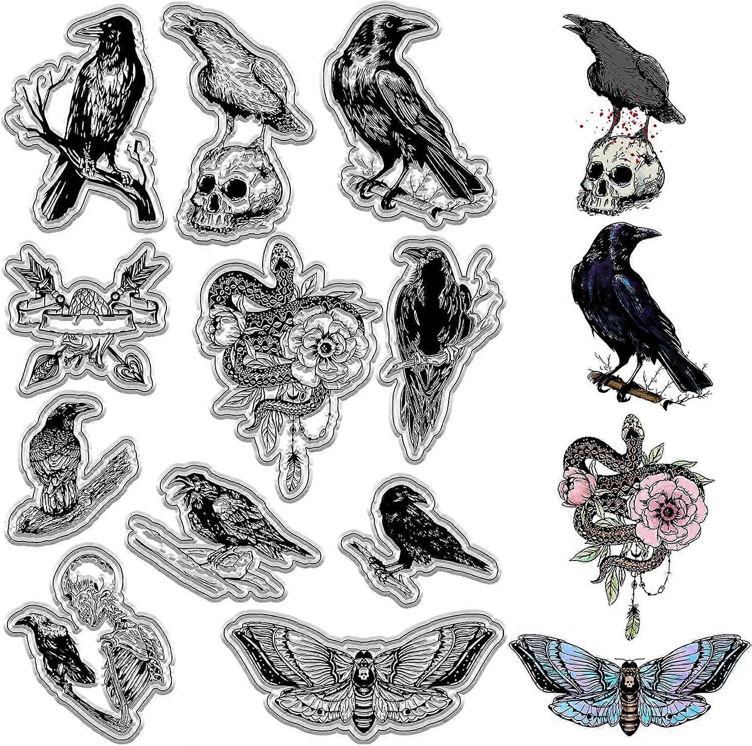 Crow Clear Stamps Skull Pumpkin Skeleton Moths Snake Flowers Halloween Raven Transparent Silicone Stamp Seals for DIY Scrapbooking Handmade Photo Albu