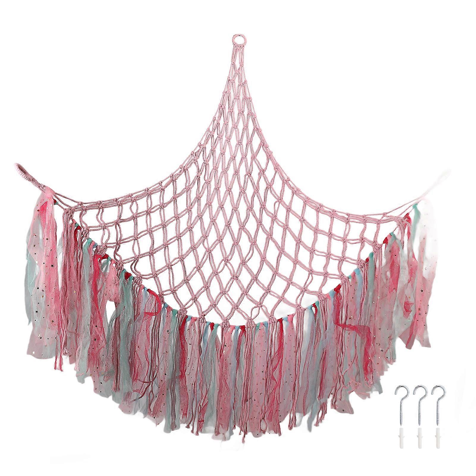 Colorful Plush Toys Net Boho Hand Woven Net Organizer Corner Hanging Storage Net for Bedroom Dormitory